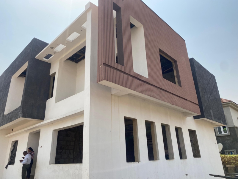 A spacious 5-bedroom semi-detached Terrence located at River Park Estate, near Dunamis Glory Dome in Lugbe, Abuja. The property is currently in a carcass state, offering the opportunity to customize the space.